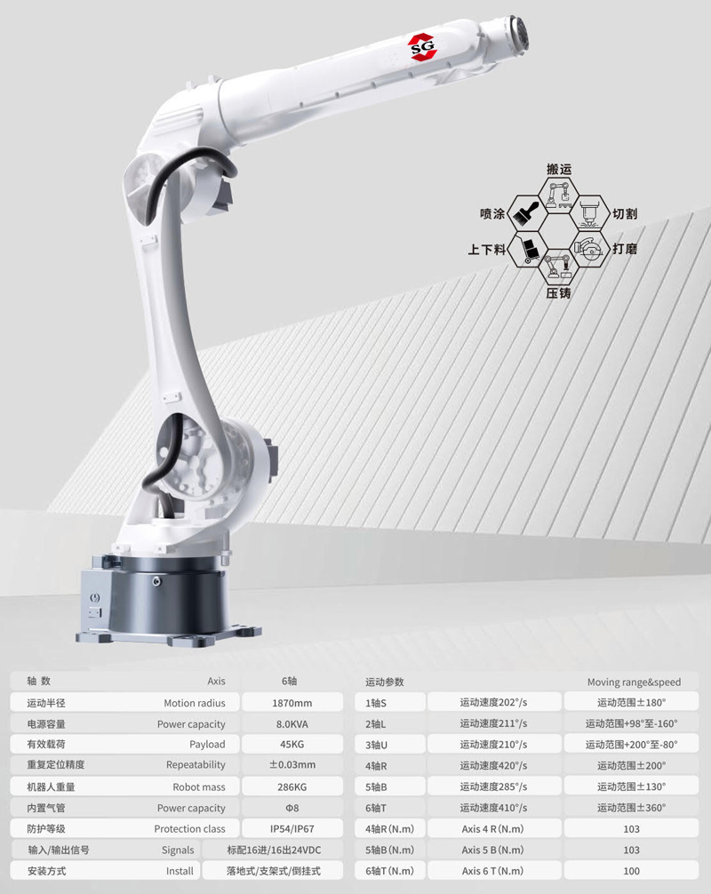 6軸中負載搬運機器人 MB45-1870